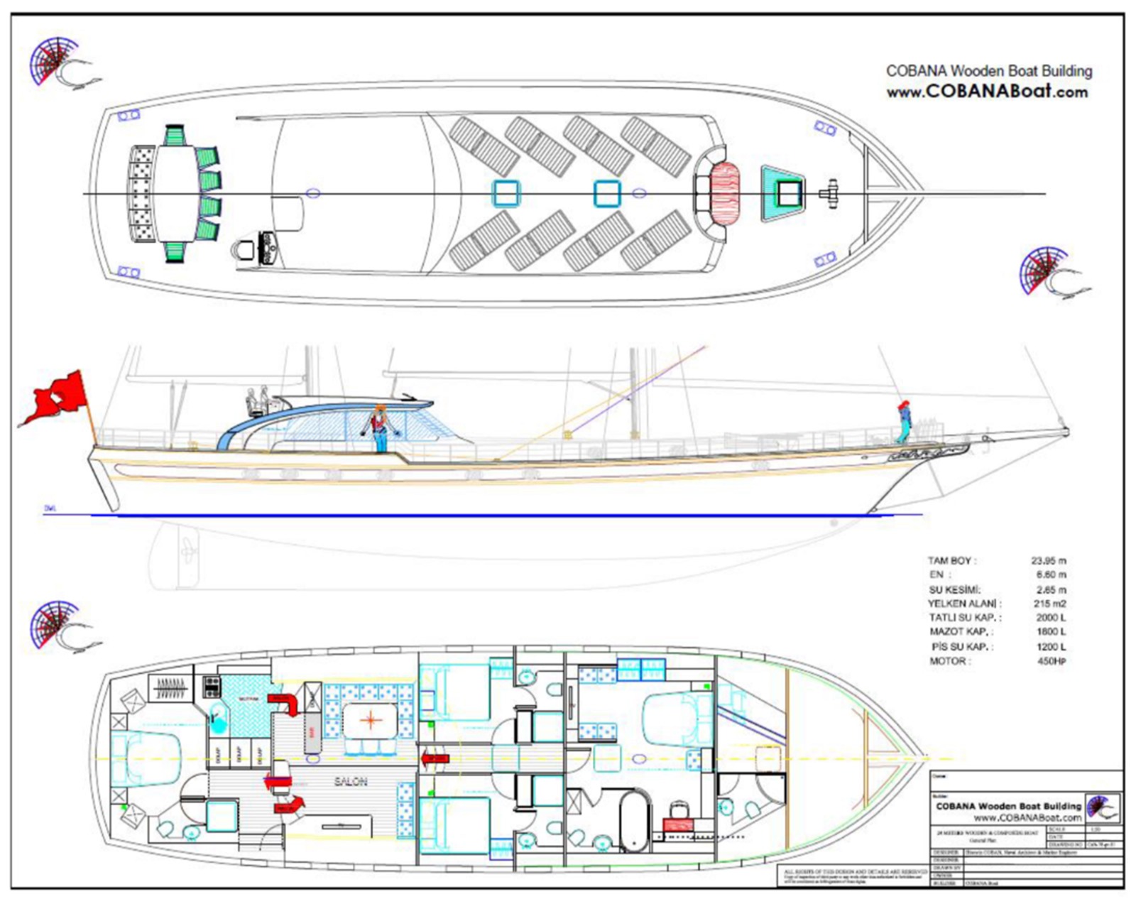 | Hull construction technique | Gövde yapım tekniği | Strip Planking, Laminated Frames | |